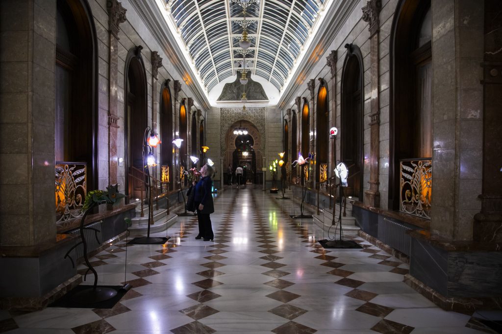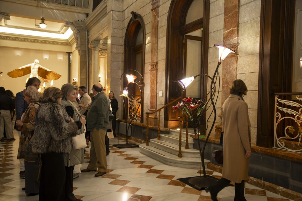 En la parte noble del edificio, la Planta Baja Monumental, las esculturas y lámparas que el artista ha diseñado específicamente para esta muestra, establecen un estimulante contraste con el carácter histórico del inmueble. Cada pieza, desde flamencos y camaleones, pasando por flores de todo tipo, se integran con naturalidad en el estilo modernista y ecléctico de las Galerías Centrales, generando una conversación estética entre tradición y contemporaneidad. En palabras del presidente, el artista “ha hecho un trabajo magnífico haciendo que combine a la perfección un edificio histórico de 1847 como es el Casino con su estilo decorativo contemporáneo”.