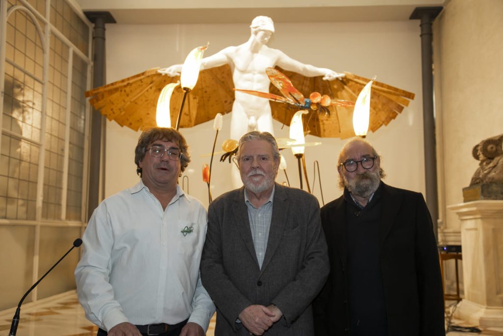 El acto, presentado en la Exedra ante una gran multitud de asistentes que se repartieron entre las Galerías Centrales, fue abierto por el presidente del Real Casino, Juan Antonio Megías, quien destacó la trayectoria y la singularidad creativa del artista. “Flyppy es un artista que lleva muchos años trabajando en Murcia y que consigue hacernos viajar por lo onírico”, señaló durante su intervención. Asimismo, subrayó la dimensión íntima y expresiva de su obra: “Flyppy es un artista que se expone y saca al exterior todo lo que lleva en su imaginación”.
