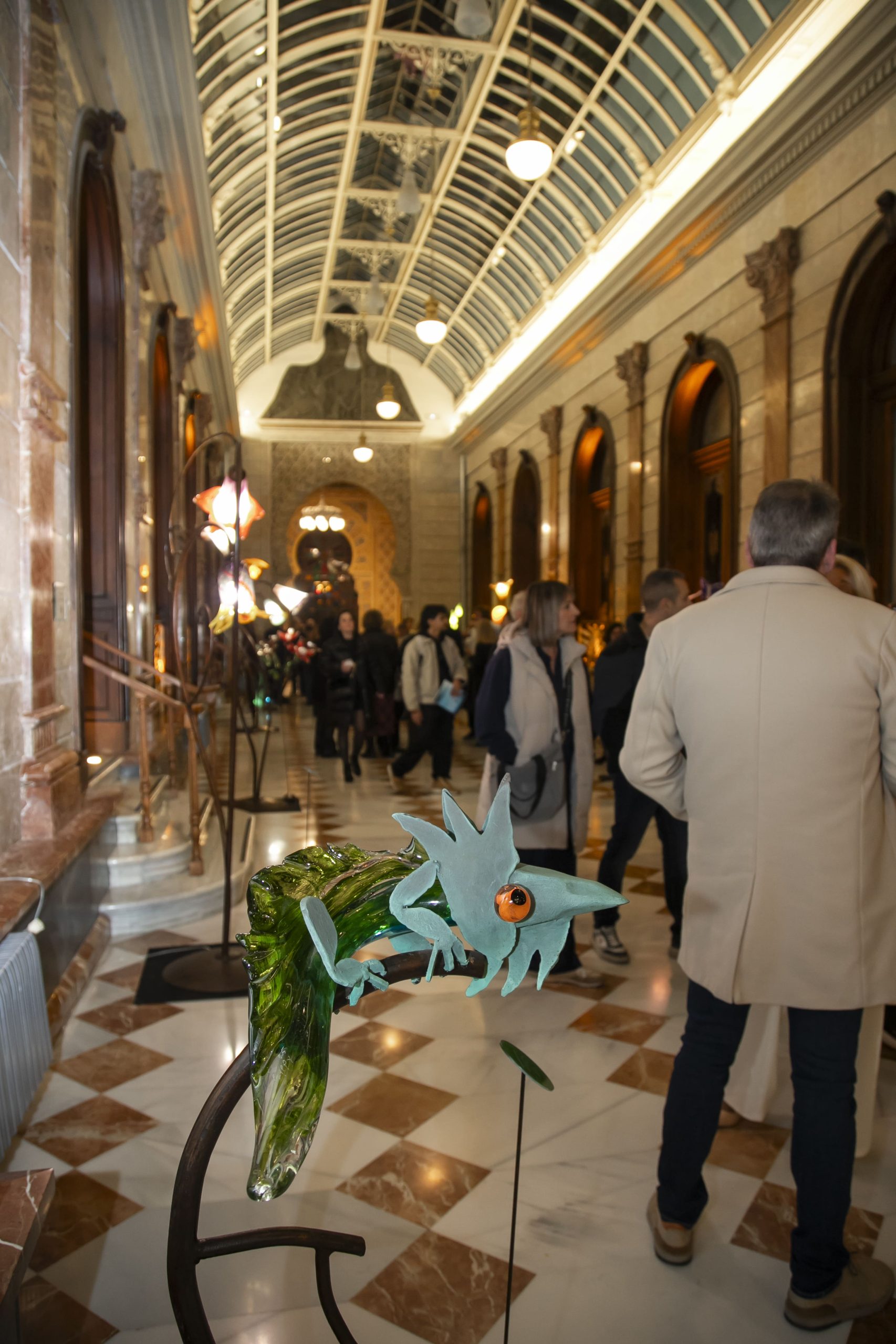 En la parte noble del edificio, la Planta Baja Monumental, las esculturas y lámparas que el artista ha diseñado específicamente para esta muestra, establecen un estimulante contraste con el carácter histórico del inmueble. Cada pieza, desde flamencos y camaleones, pasando por flores de todo tipo, se integran con naturalidad en el estilo modernista y ecléctico de las Galerías Centrales, generando una conversación estética entre tradición y contemporaneidad. En palabras del presidente, el artista “ha hecho un trabajo magnífico haciendo que combine a la perfección un edificio histórico de 1847 como es el Casino con su estilo decorativo contemporáneo”.