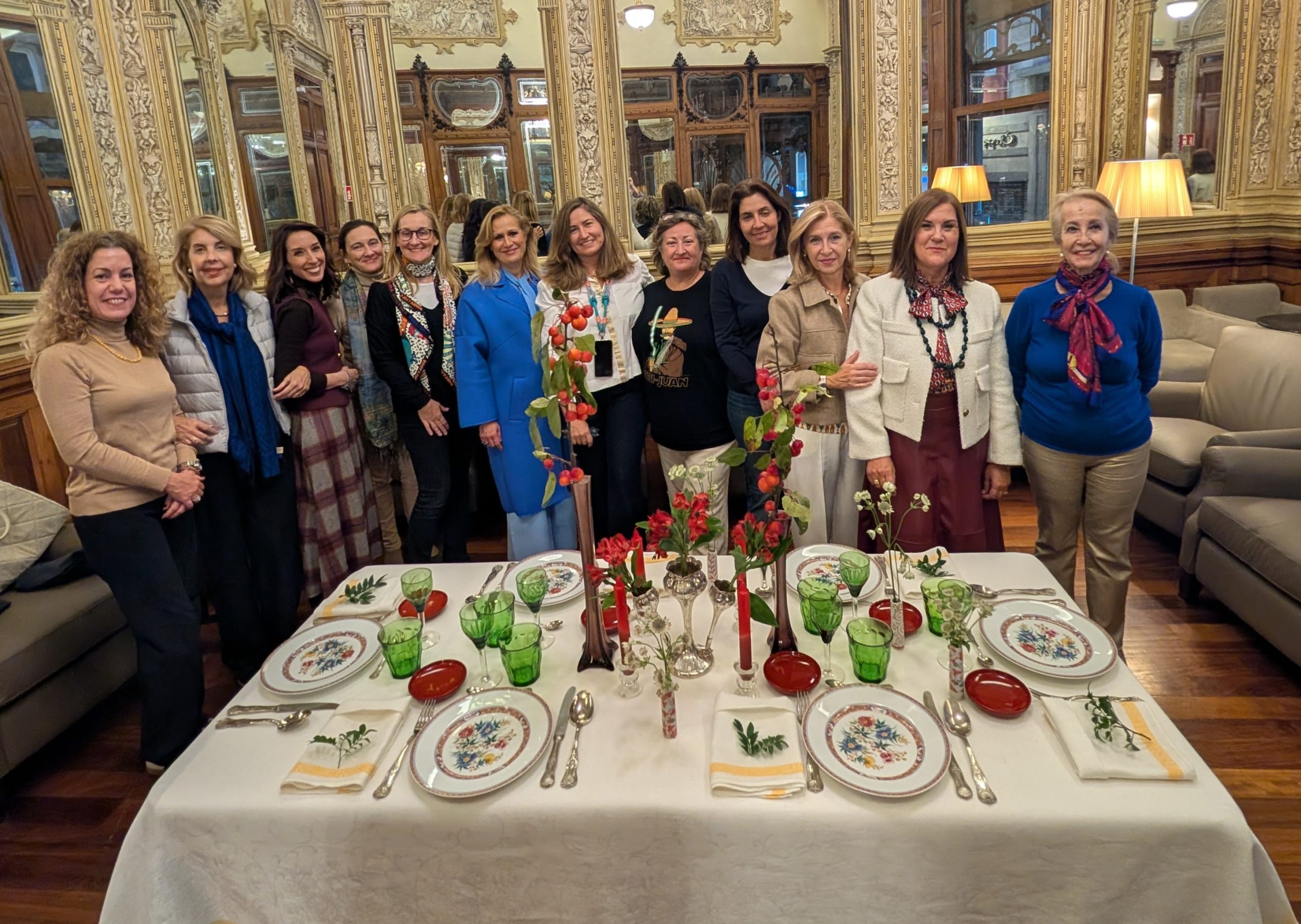 Durante la sesión, las asistentes pudieron conocer de primera mano los principios que rigen una mesa elegante y bien resuelta. Granda explicó la importancia de la armonía cromática, la elección adecuada de texturas, la disposición equilibrada de vajilla y cubertería y el papel esencial de un arreglo floral correctamente integrado en el conjunto.